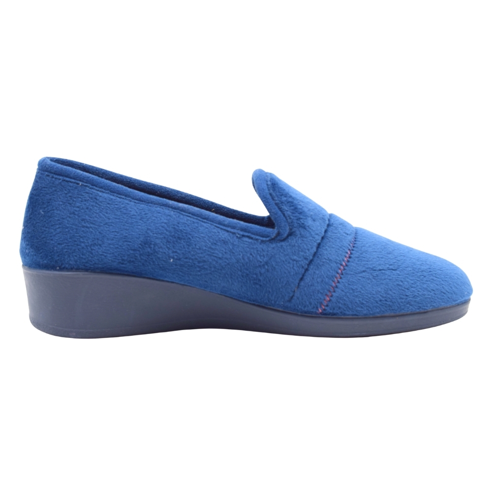 Zapatillas de casa/hogar textiles suave y bordado en el empeine para mujer en color Azul Marino