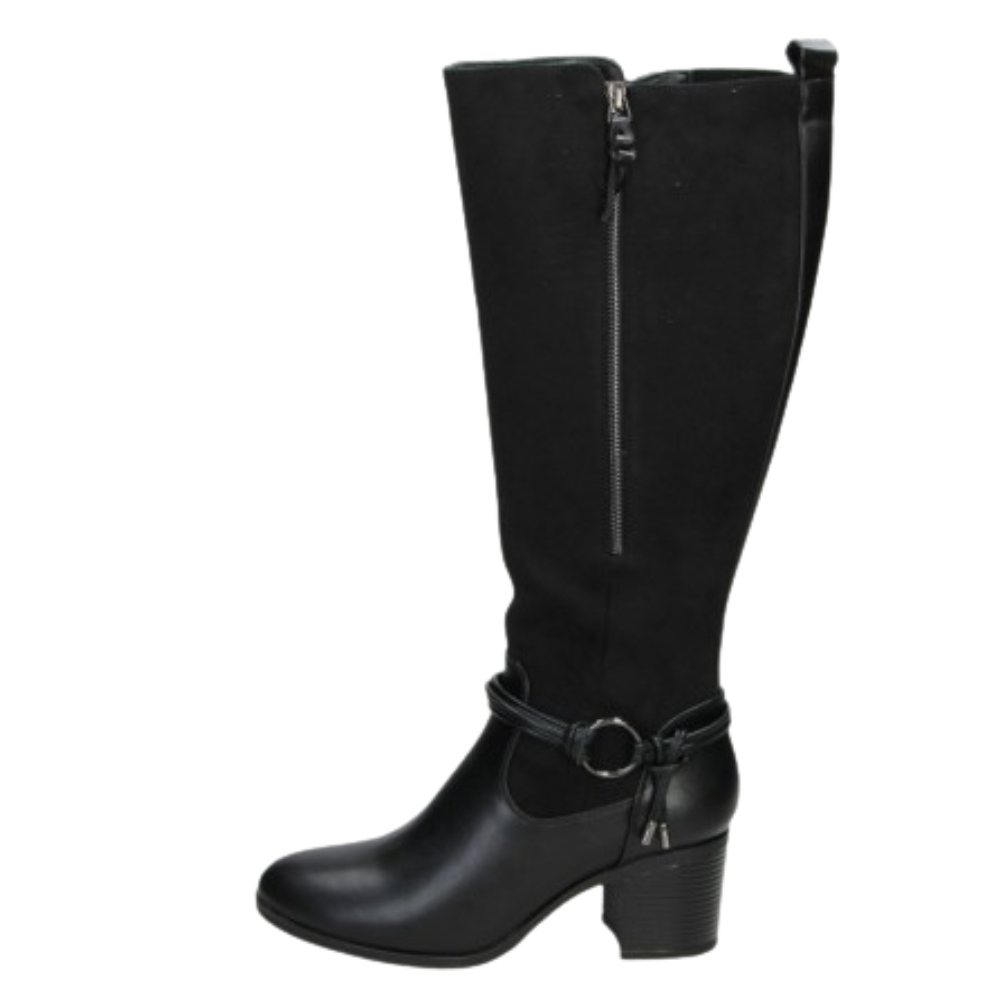 Bota alta AMARPIES casual con adorno hebilla color negro para mujer