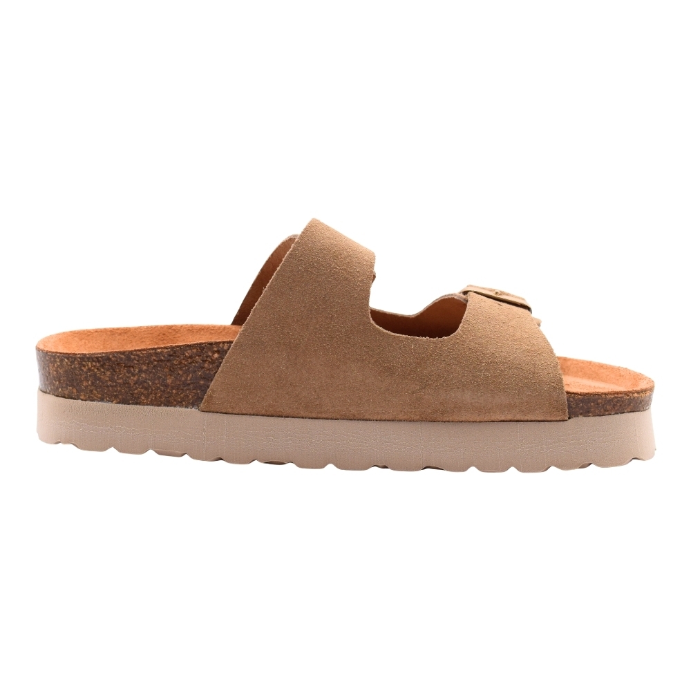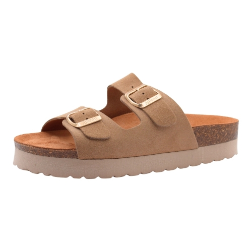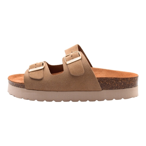 Sandalias AUTENTI BE CONFORTABLE planas textiles con hebilla para mujer, color Topo