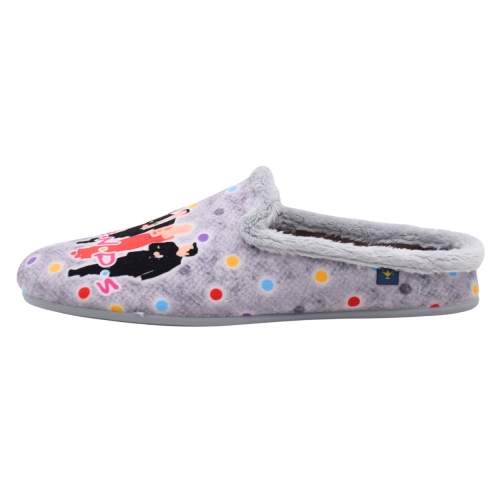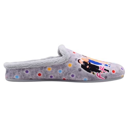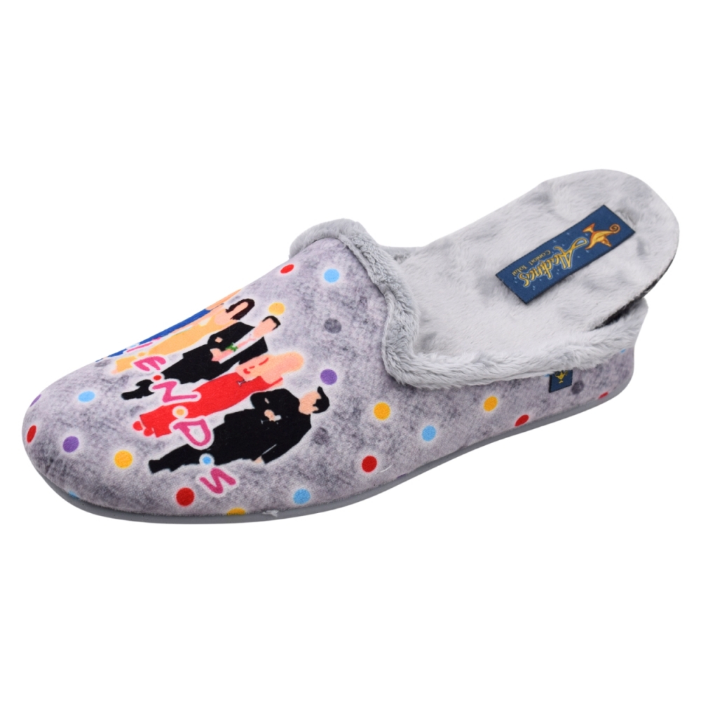 Zapatillas de casa/hogar color gris claro con diseño de siluetas personajes de la serie FRIENDS y mensaje para mujer