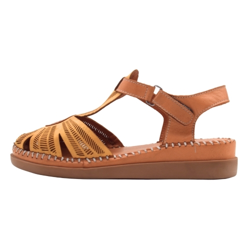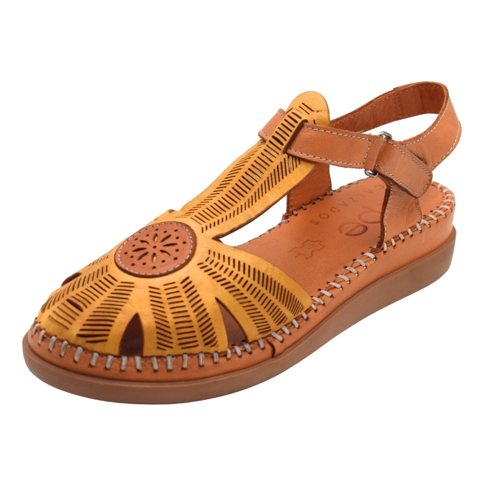 Sandalias PASARELA de piel troquelada para mujer color Amarillo mostaza y marrón cuero