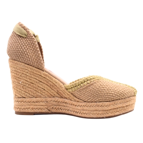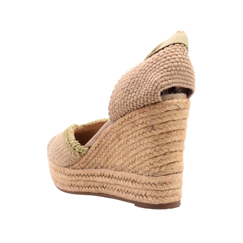 Sandalias PASARELA con plataforma de esparto/yute con diseño textil trenzado en forma de corazón en color Natural/Beige para mujer.