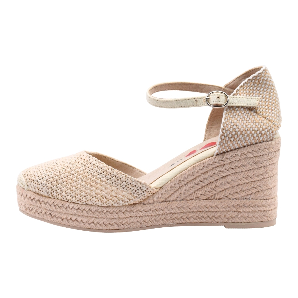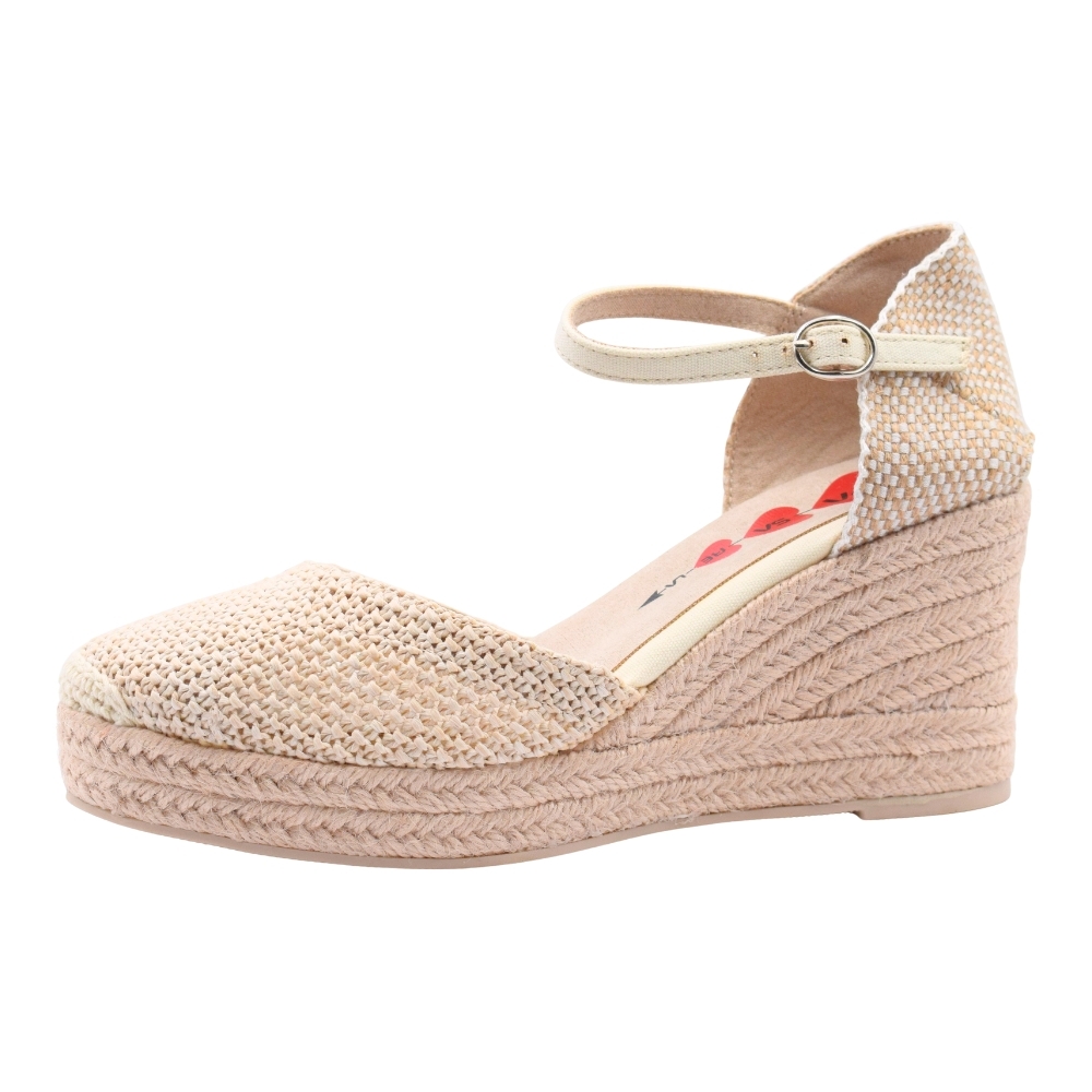 Sandalias valencianas con plataforma y cuña de esparto/yute en color Natural para mujer.