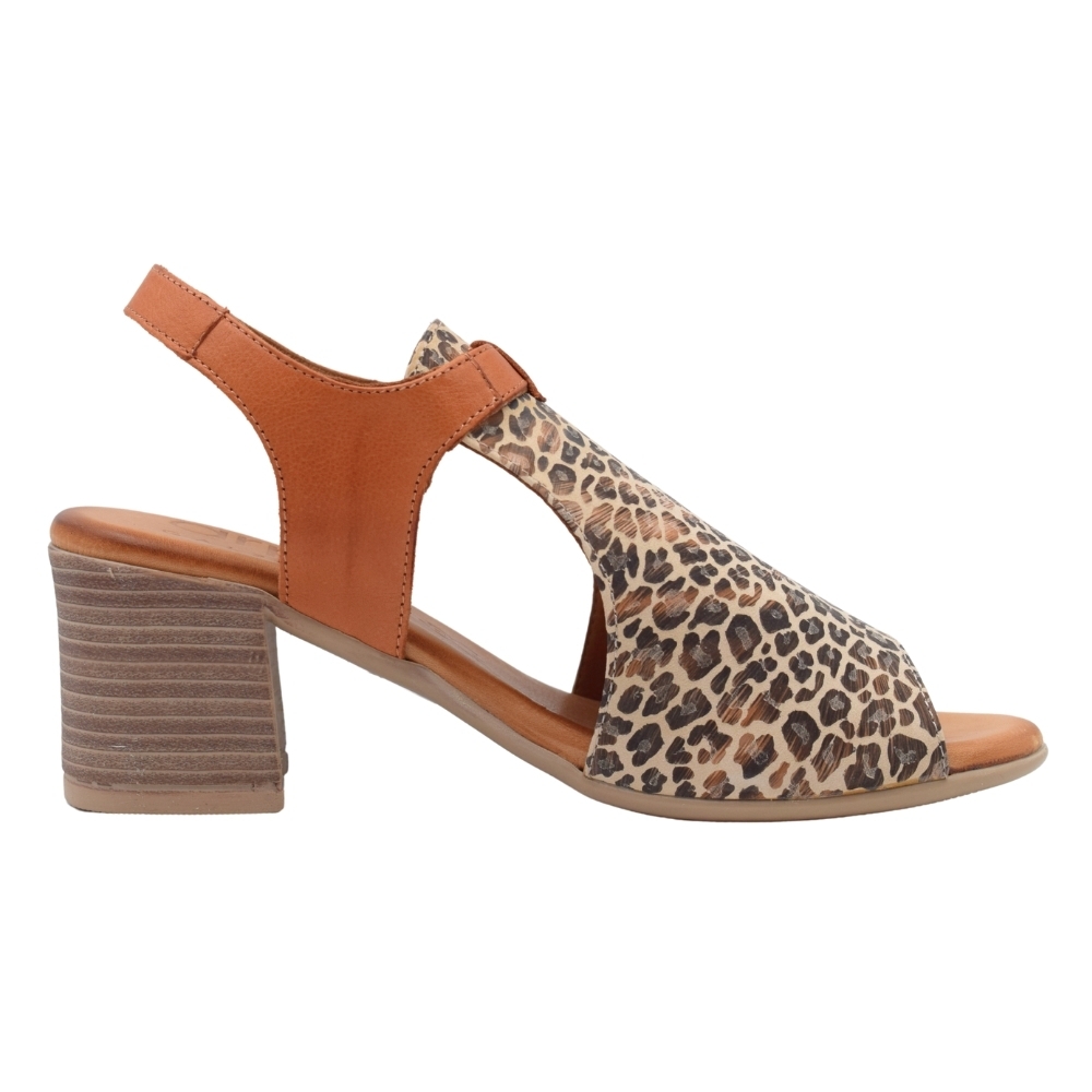 Sandalias PASARELA de piel con estampado leopardo para mujer color marrón
