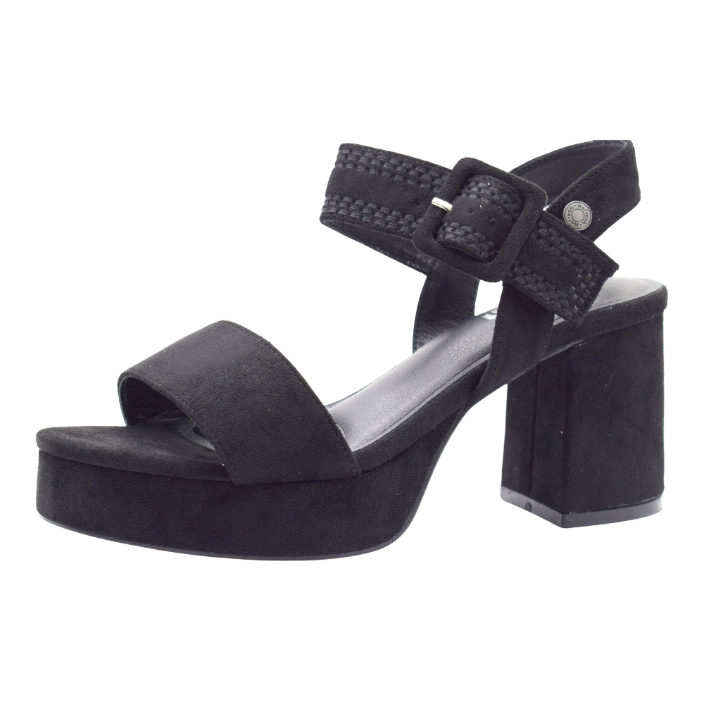 Sandalia REFRESH con diseño de pala de tela y tacón grueso para mujer color Negro