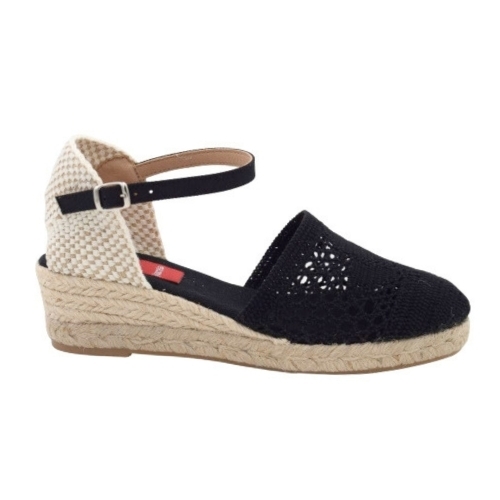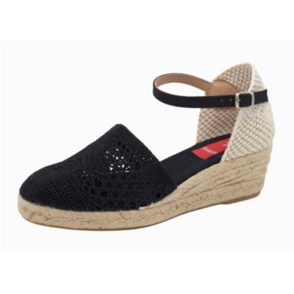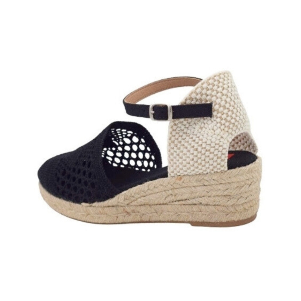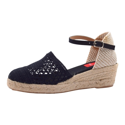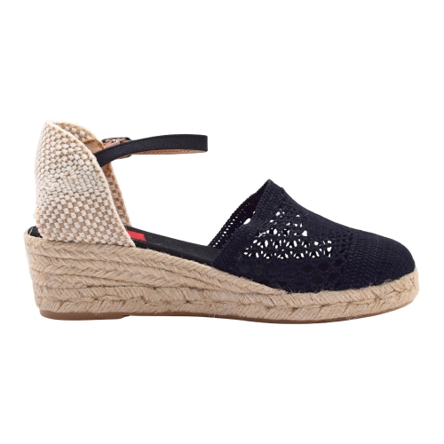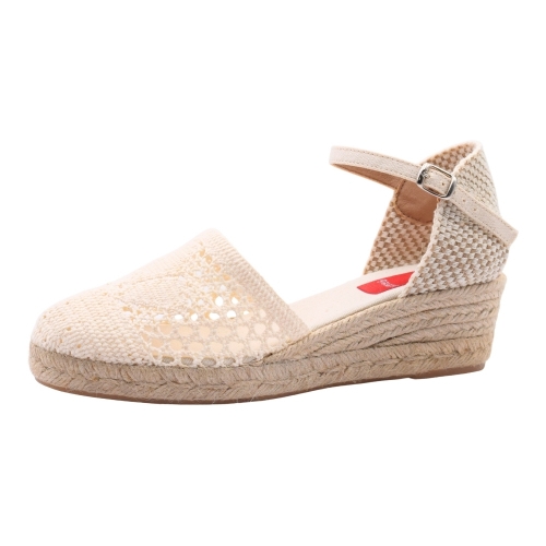 Sandalias con cuña de esparto de 3 cuerdas (3 cm + 2 cm plataforma).Pala de rejilla fabricada en material textil con suela de goma antideslizante.