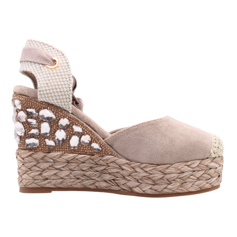 Sandalias XTI textiles con cuña y plataforma de esparto/yute y pedrería para mujer Taupe