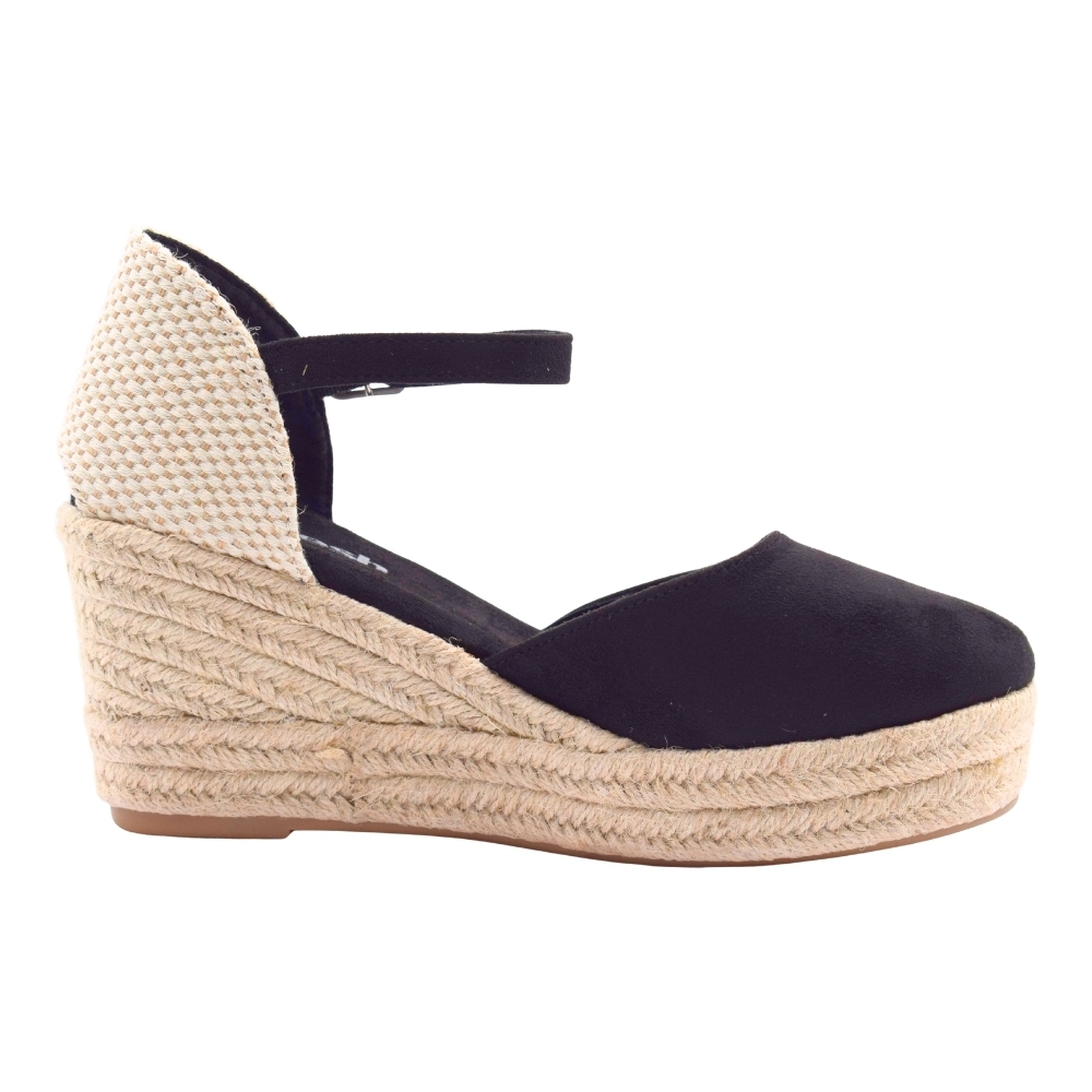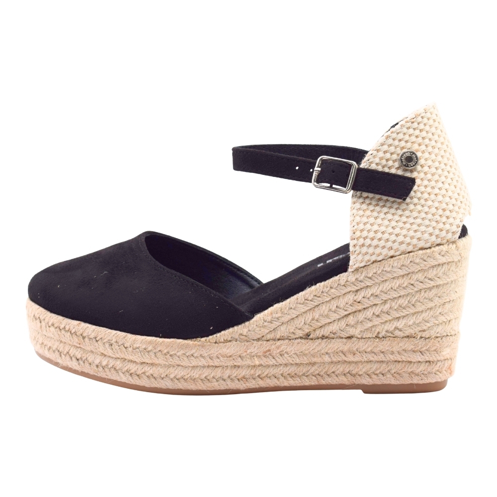 Sandalias XTI textiles de cuña y plataforma de esparto/yute para mujer, color Negro