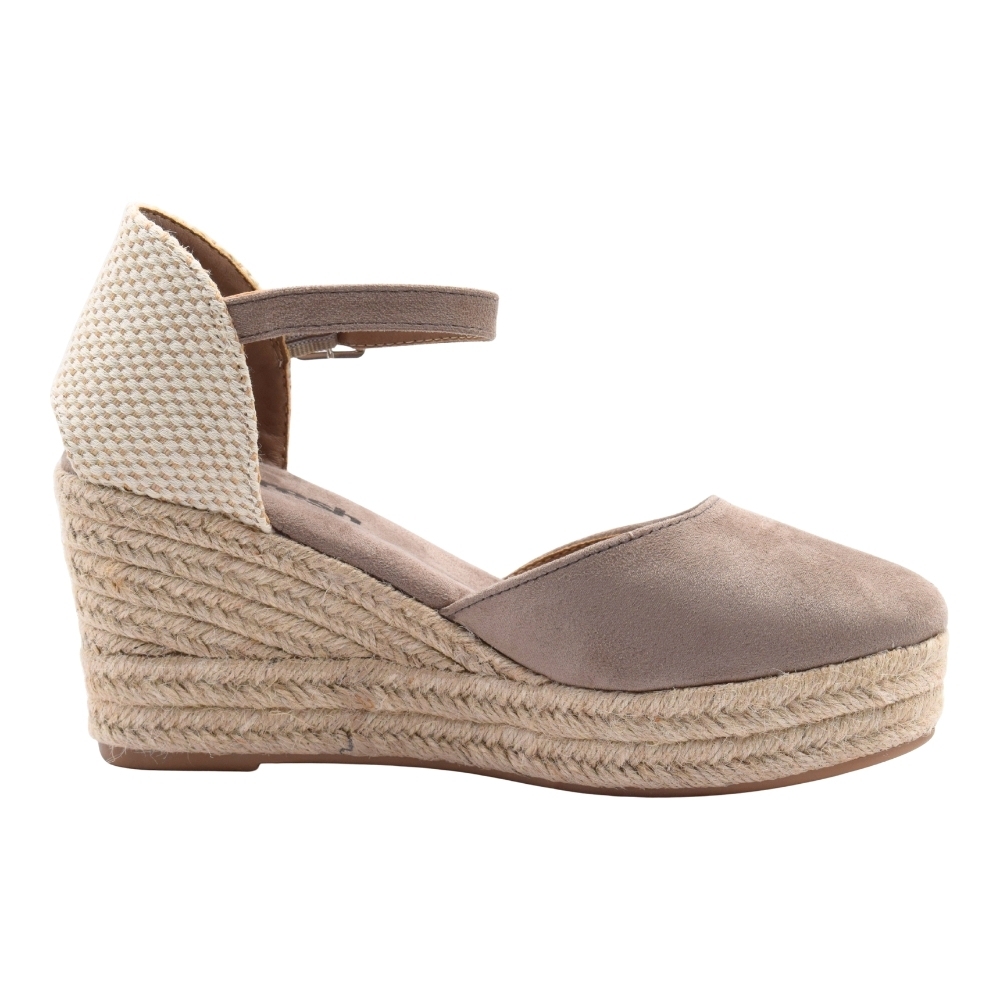 Sandalias XTI textiles de cuña y plataforma de esparto/yute para mujer, color Taupe