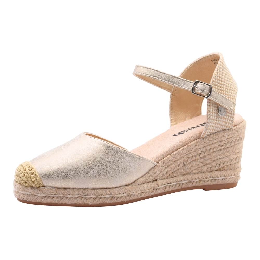 Sandalias XTI textiles de cuña de esparto/yute para mujer, color Oro