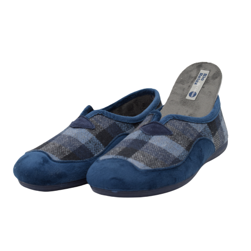 Fabricadas en materiales textiles, plantilla textil extraíble y suela de goma antideslizante. Estampado de cuadros.