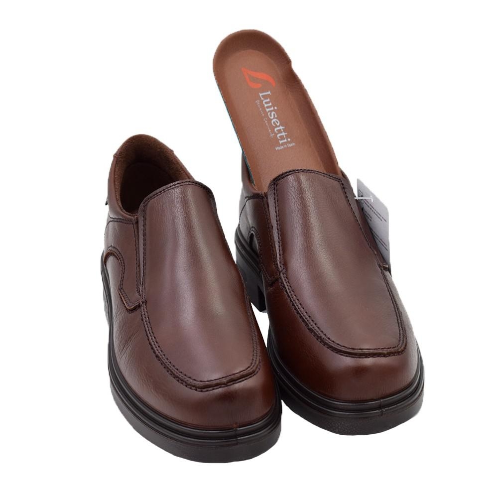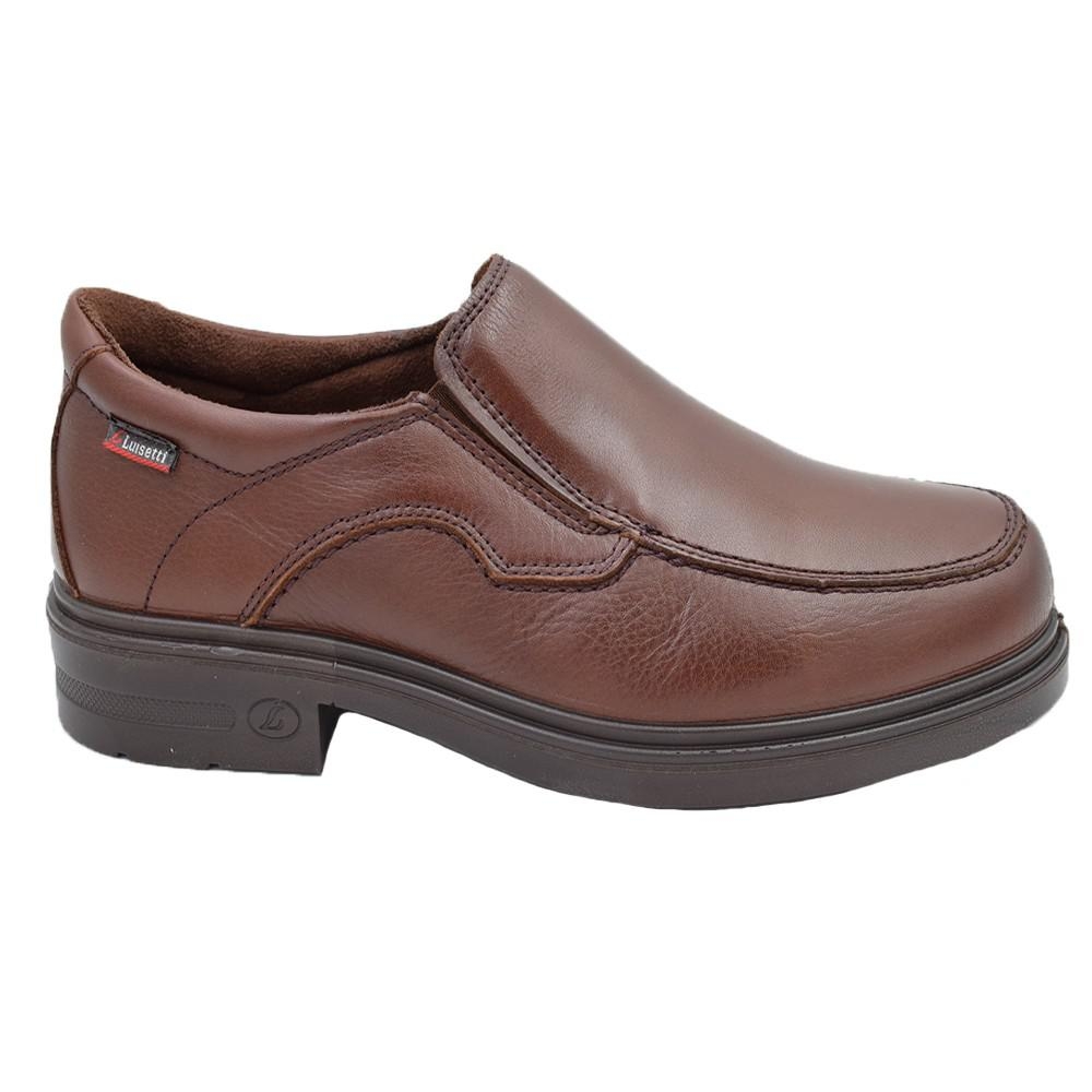 Zapatos de piel LUISETTI sin cordones para hombre. Zapatos con elásticos laterales y plantillas interiores de piel extraíbles. Suela de goma antideslizante. Color Coñac
