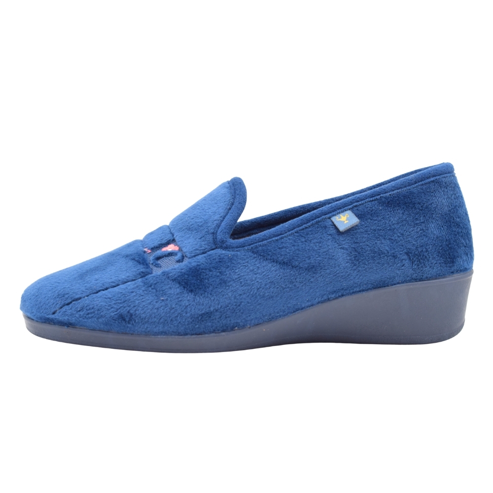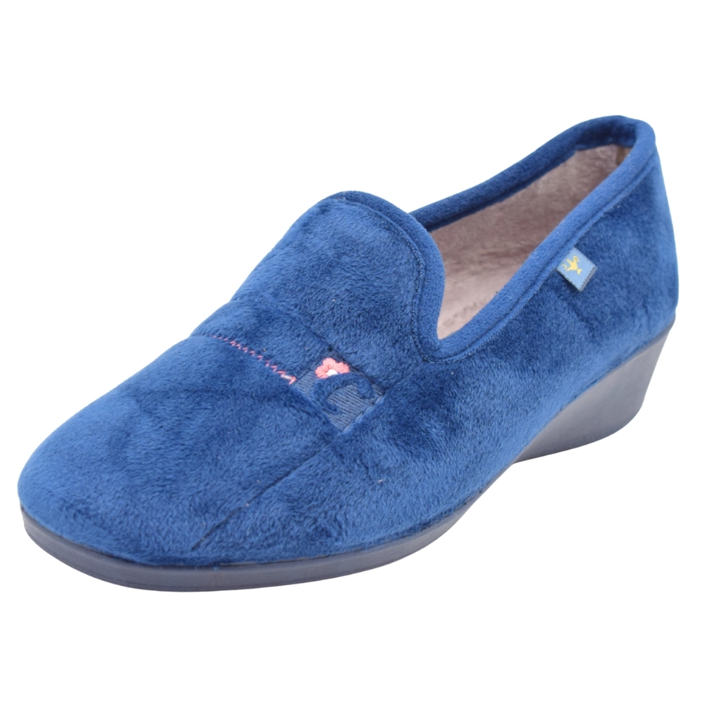Zapatillas de casa/hogar textiles suave y bordado en el empeine para mujer en color Azul Marino