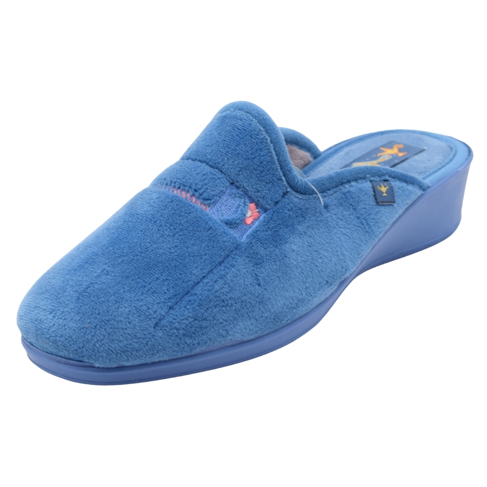 Zapatillas de casa/hogar textiles suave y bordado en el empeine para mujer en color Azul Azafata