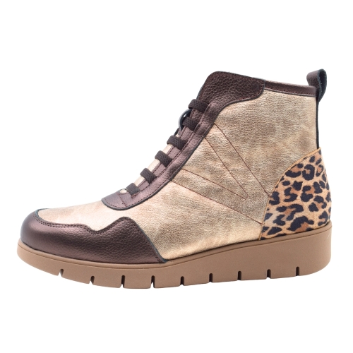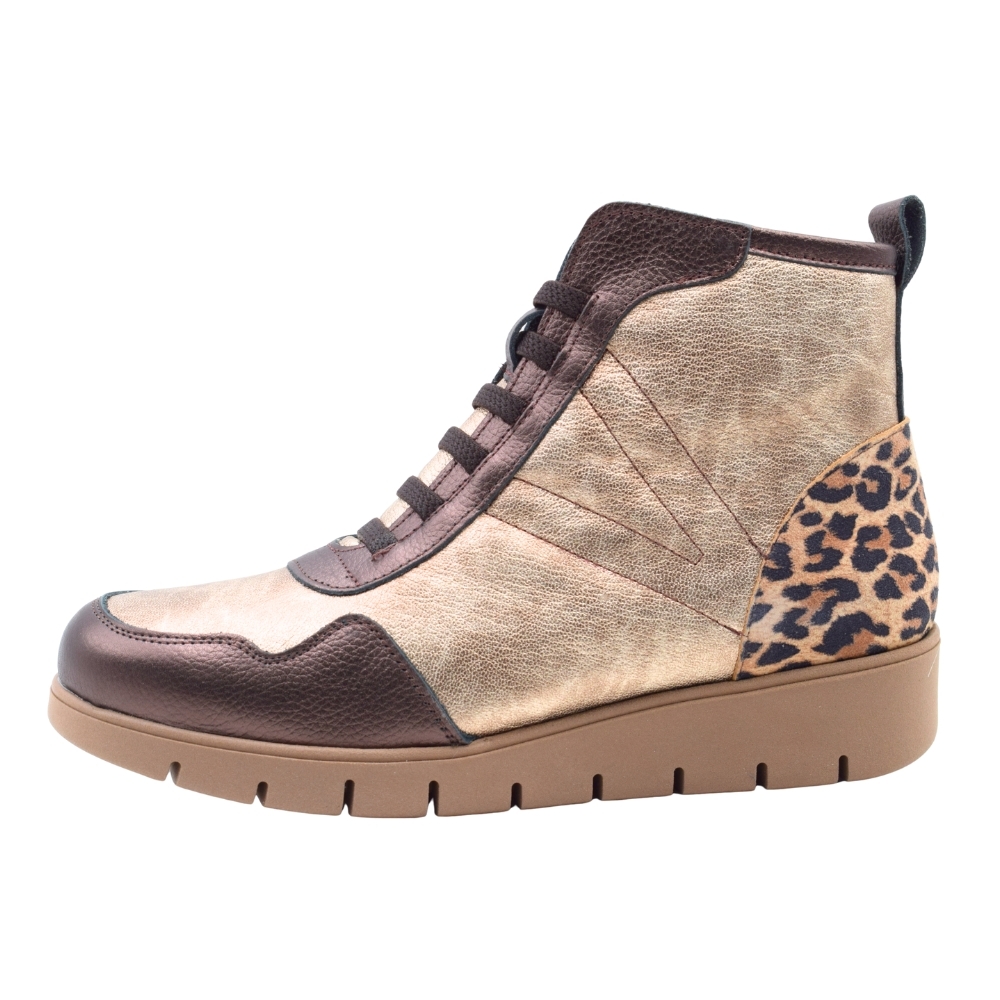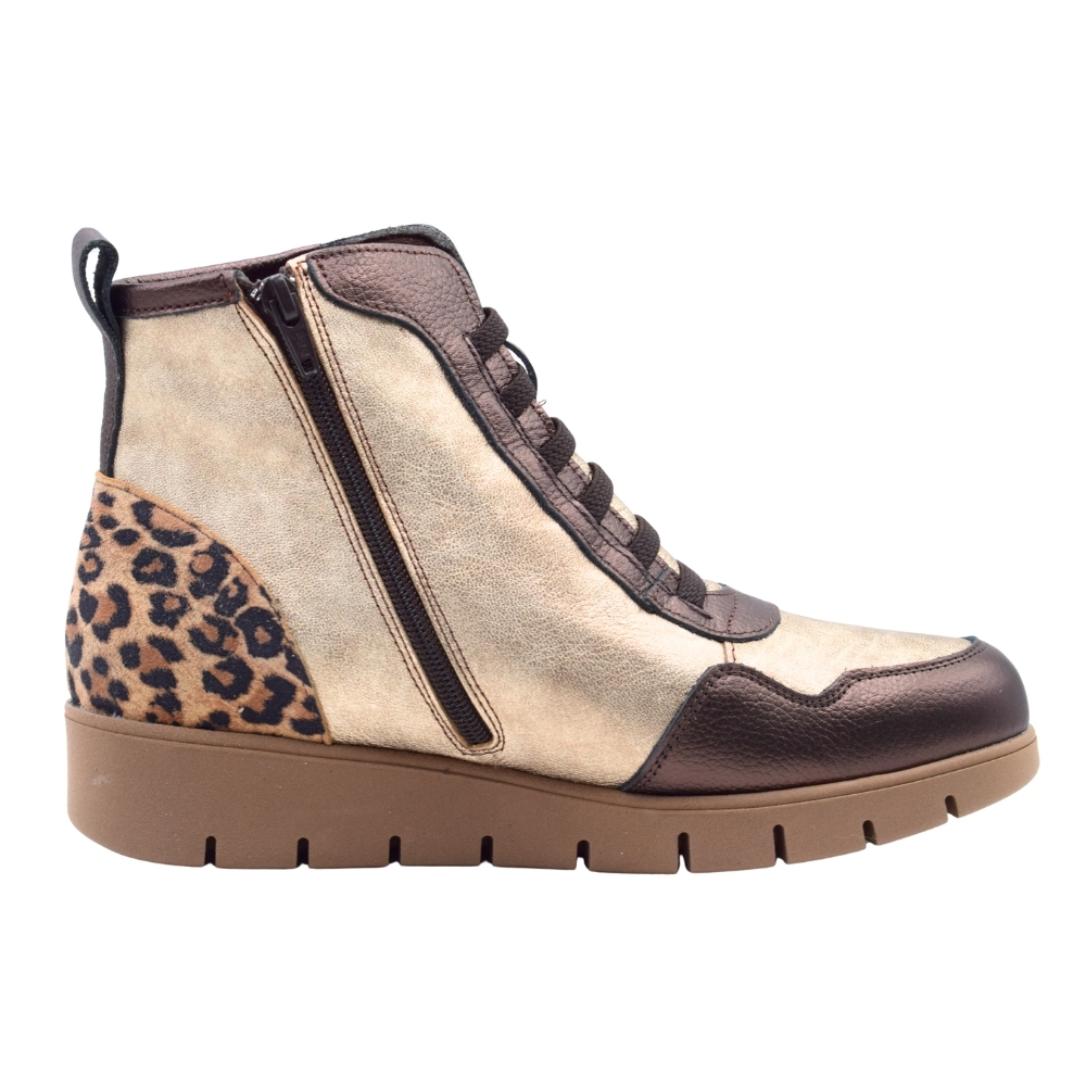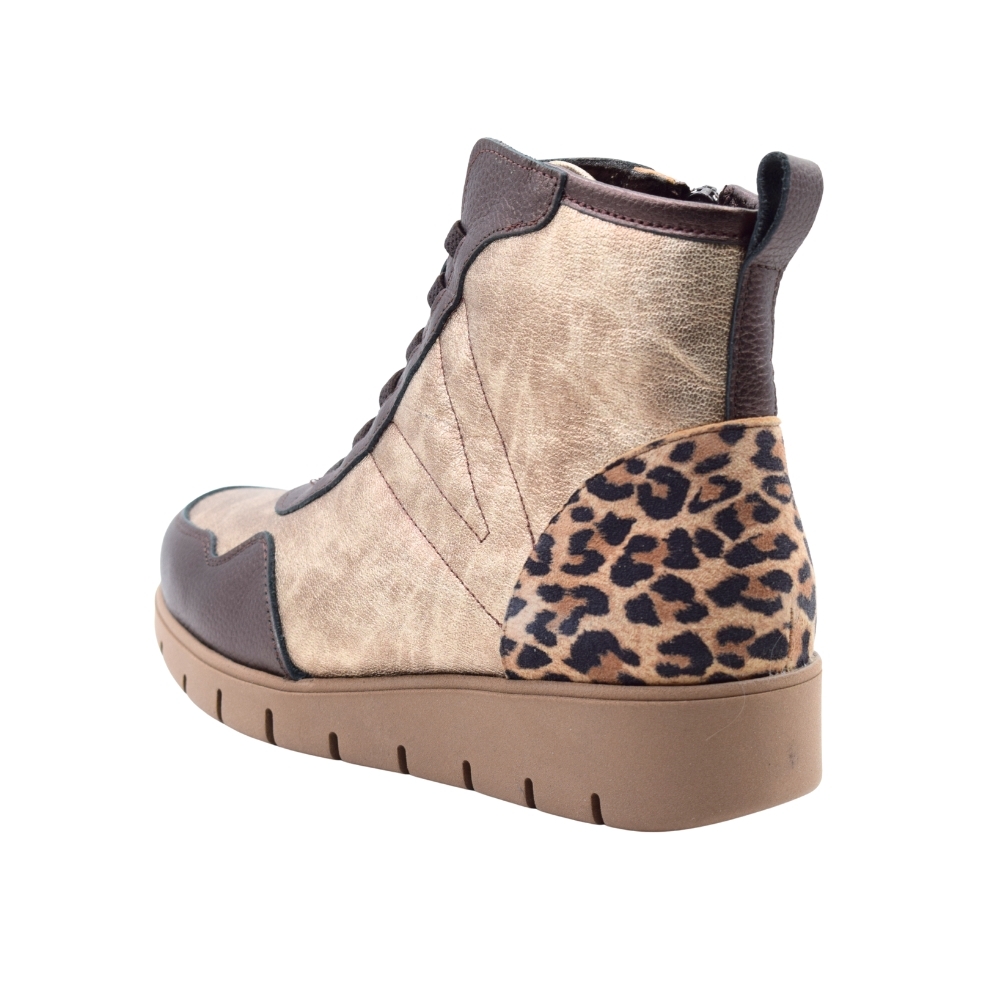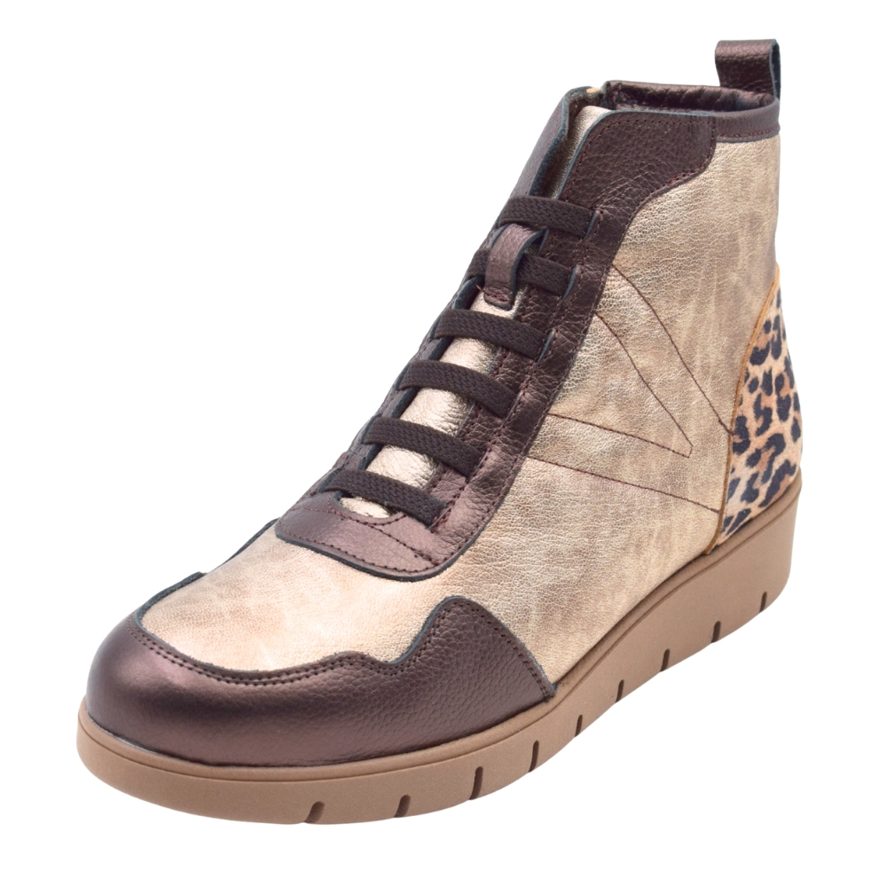 Zapatillas estilo bambas altas PASARELA en color oro metal con estampado de Leopardo para mujer