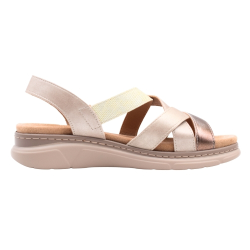 Sandalias PASARELA plana con cuña y diseño de pala troquelado para mujer en color Taupe