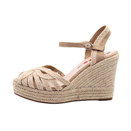 Sandalias con plataforma de esparto/yute con tira en yute en color natural/nude para mujer.