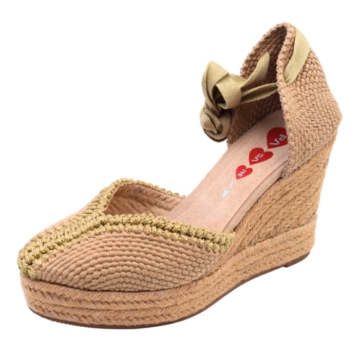 Sandalias PASARELA con plataforma de esparto/yute con diseño textil trenzado en forma de corazón en color Natural/Beige para mujer.