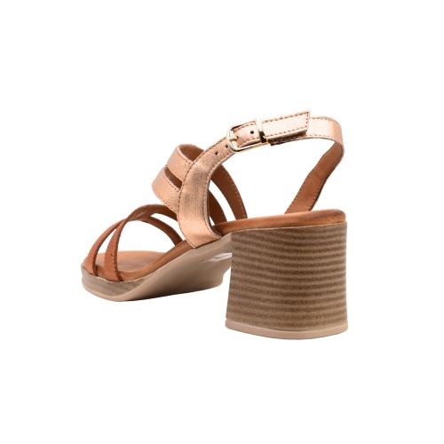 Sandalias PASARELA con diseño de tiras de piel para mujer color marrón cuero y detalles en Rosa Metalizado