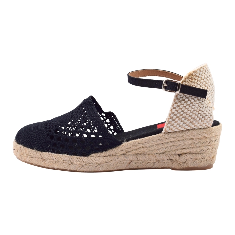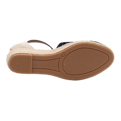 Sandalias con cuña de esparto de 3 cuerdas (3 cm + 2 cm plataforma).Pala de rejilla fabricada en material textil con suela de goma antideslizante.