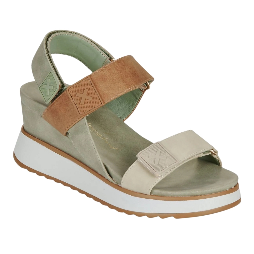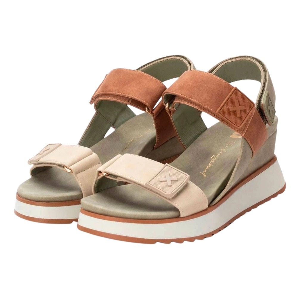 Sandalias deportivas XTI de cuña-plataforma para mujer color kaki