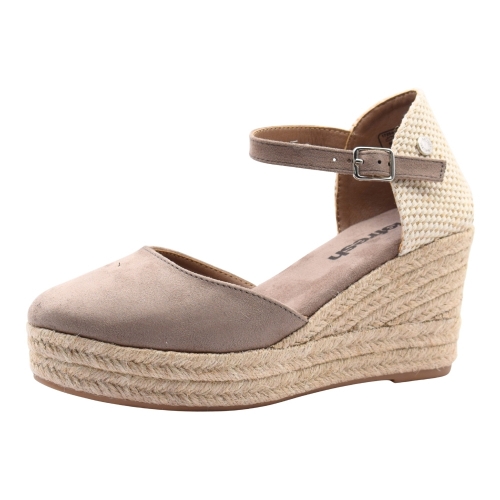Sandalias XTI textiles de cuña y plataforma de esparto/yute para mujer, color Taupe